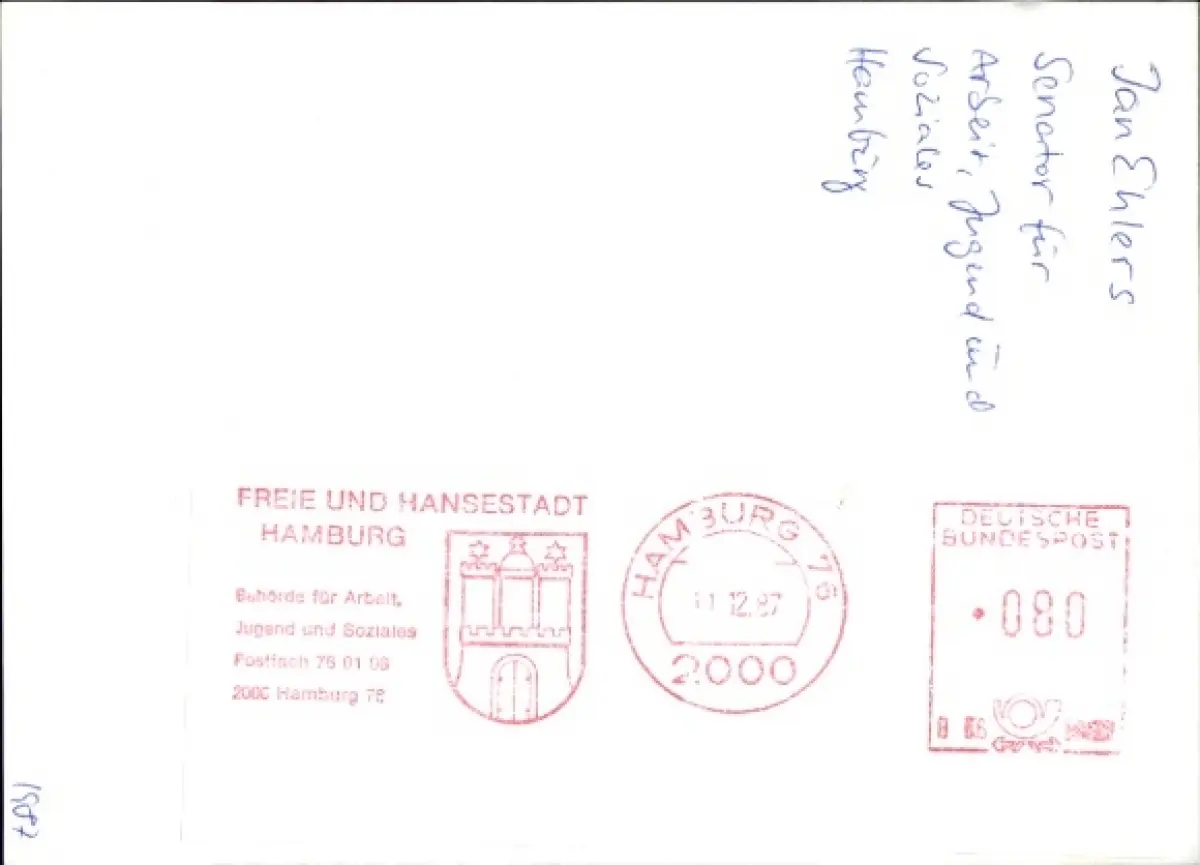 Ak Politiker Jan Ehlers, Hamburger Senator, Portrait, Autogramm