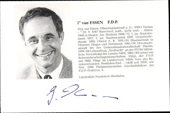 Ak Politiker Jörg van Essen, FDP, Autogramm