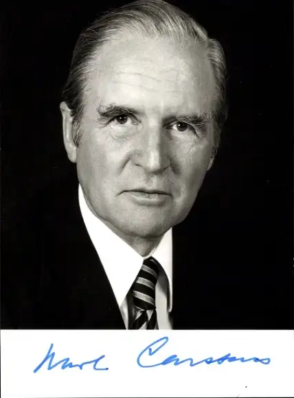 Ak Politiker Karl Carstens, ehem. Bundespräsident, Portrait, Autogramm