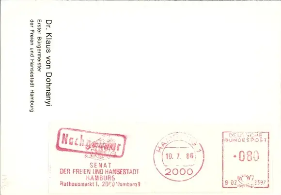 Ak Politiker Klaus von Dohnanyi, Porträt, erster Bürgermeister von Hamburg, Autogramm
