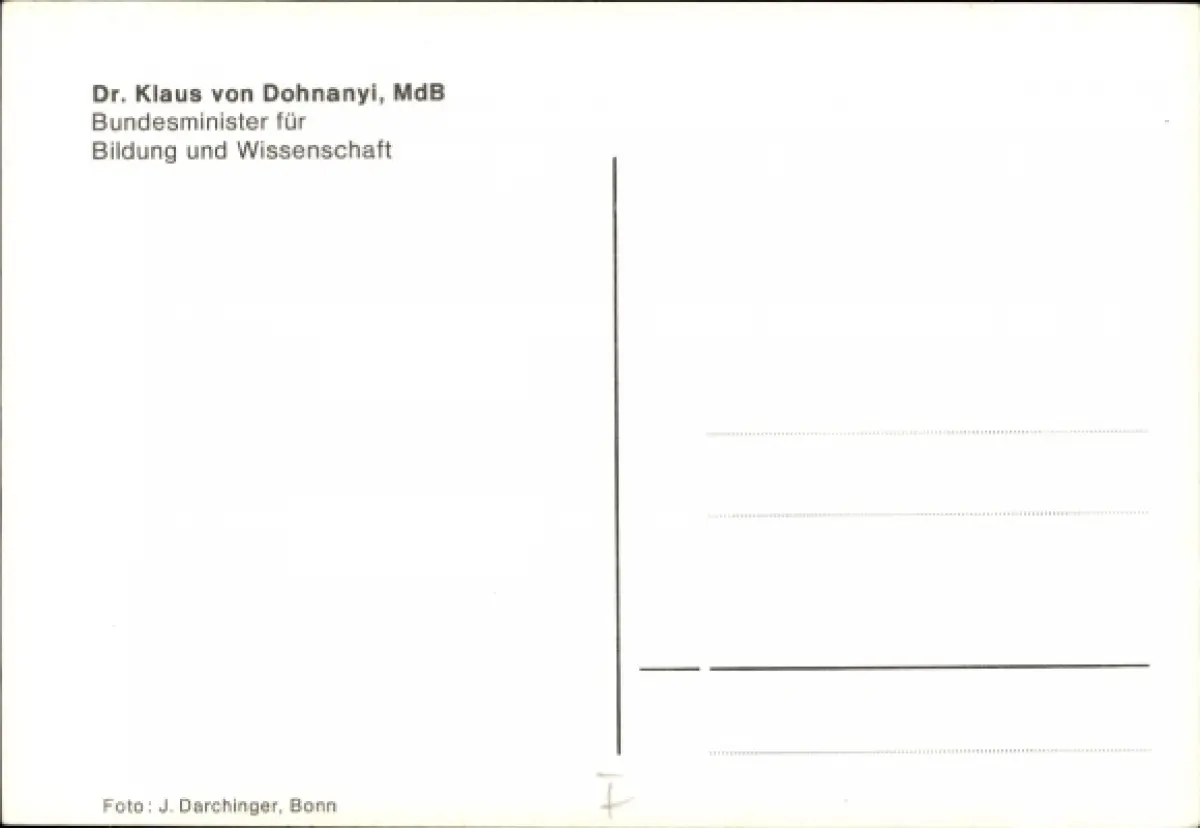 Ak Politiker Klaus von Dohnanyi, Portrait, Autogramm