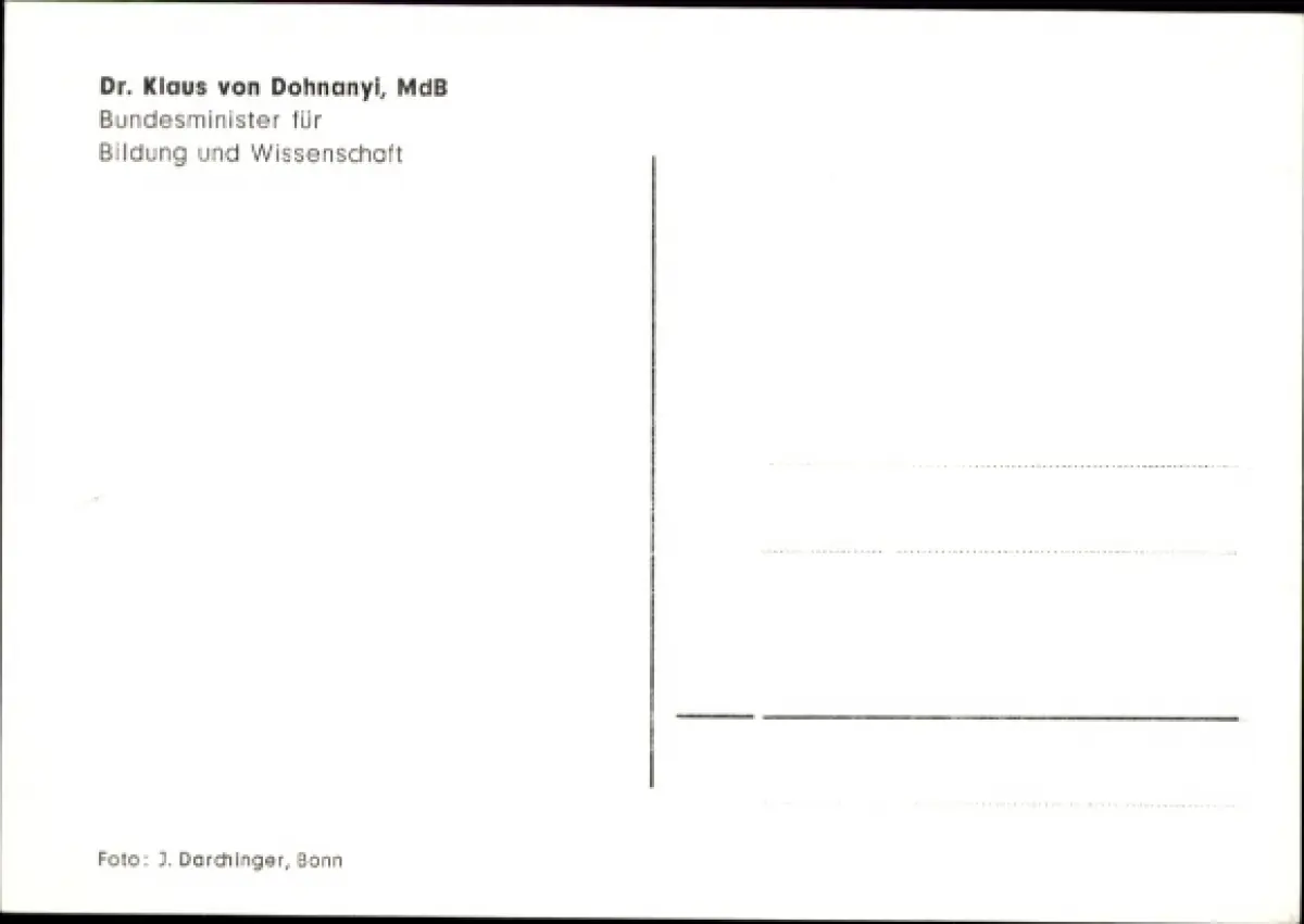Ak Politiker Klaus von Dohnanyi, Portrait, Autogramm