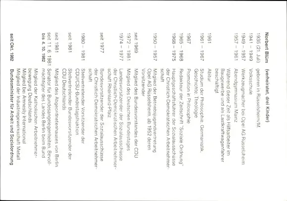 Ak Politiker Nobert Blüm, Portrait, Autogramm