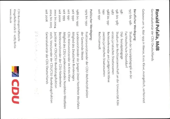 Ak Politiker Ronald Pofalla, CDU, Autogramm