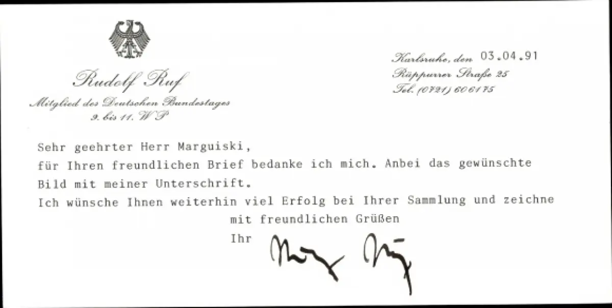 Ak Politiker Rudolf Ruf, CDU, Autogramm
