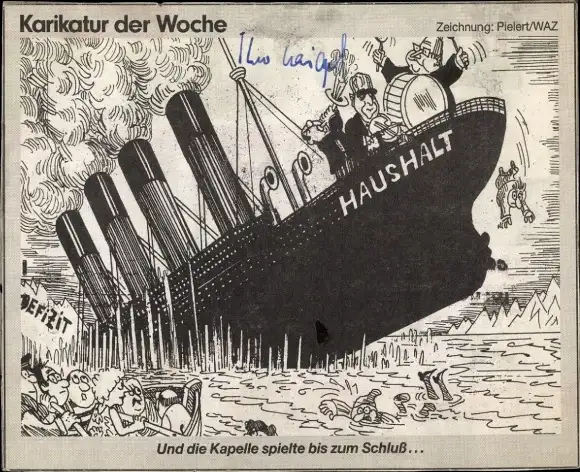 Ak Politiker Theo Waigel, Helmut Kohl, Karikatur, Autogramm