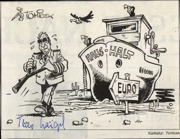 Ak Politiker Theo Waigel, Karikatur, Autogramm