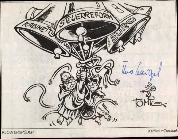 Ak Politiker Theo Waigel, Klosterbrüder, Helmut Kohl, Karikatur Tomicek, Autogramm