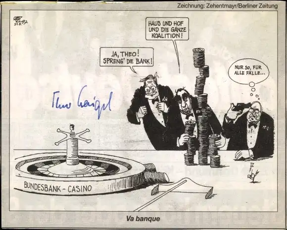 Ak Politiker Theo Waigel im Casino, Karikatur, Autogramm