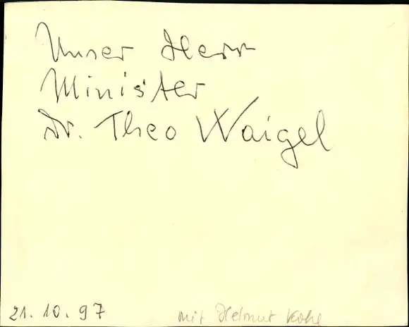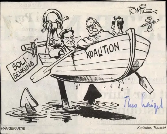 Ak Politiker Theo Waigel mit Helmut Kohl, Karikatur, Hängepartie, Autogramm