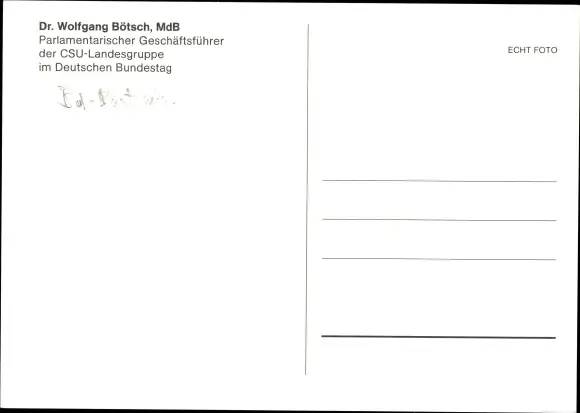 Ak Politiker Wolfgang Bötsch, CSU, Portrait, Autogramm
