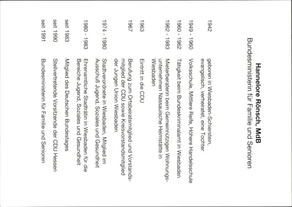 Ak Politikerin Hannelore Rönsch, Porträt, Autogramm