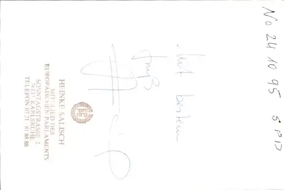 Ak Politikerin Heinke Salisch, SPD, Autogramm