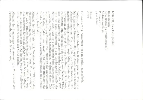 Ak Politikerin Lieselotte Berger, Autogramm