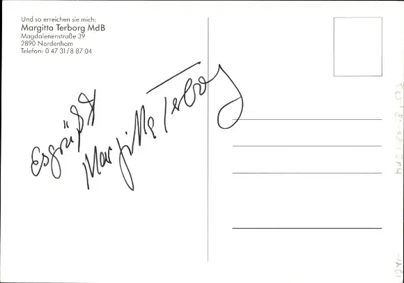 Ak Politikerin Margitta Terborg, SPD, Autogramm