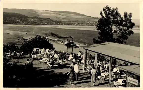 Ak Polle an der Weser, Cafe, Terrasse, Dampfer
