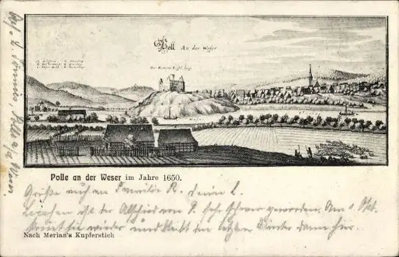 Ak Polle an der Weser, Gesamtansicht, Jahr 1650