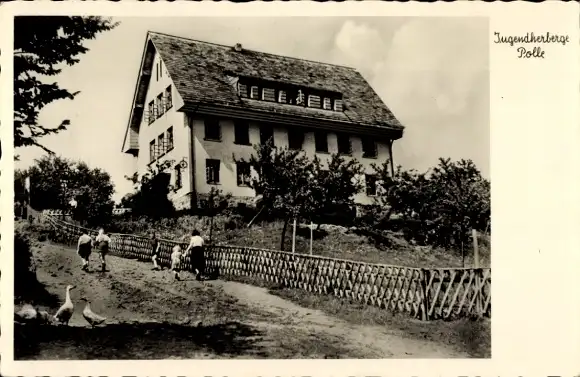 Ak Polle an der Weser, Jugendherberge, Gänse