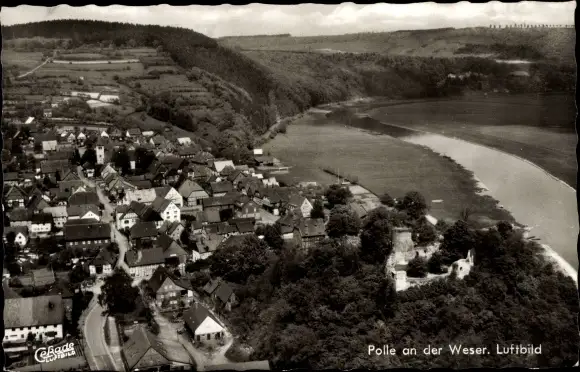 Ak Polle an der Weser, Ortsansicht, Luftbild