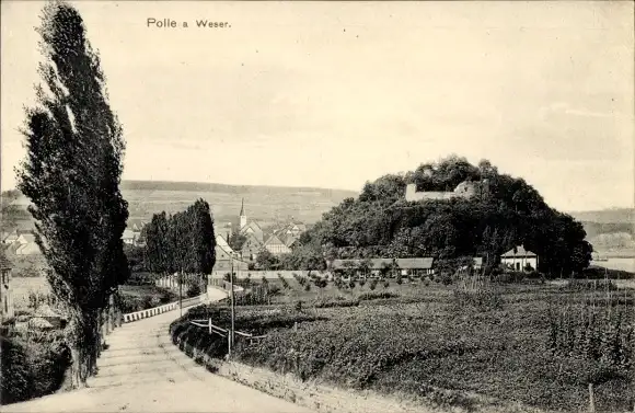 Ak Polle an der Weser, Ortsansicht mit Ruine