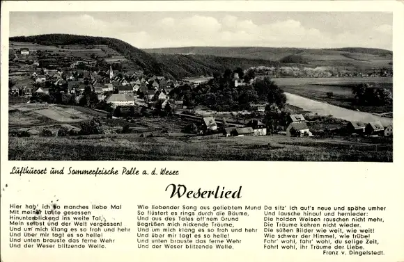 Ak Polle an der Weser, Totalansicht, Weserlied