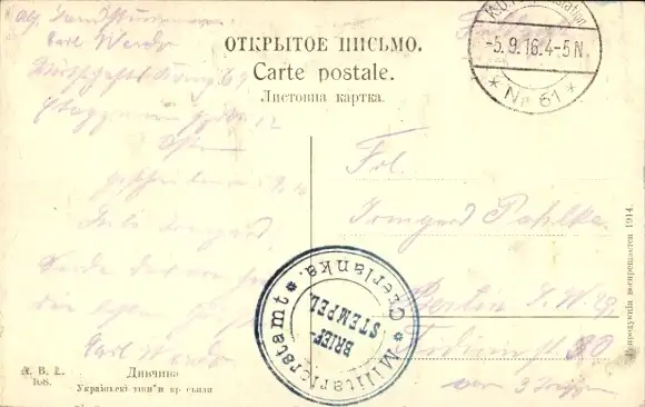 Zustand, siehe Scan, gelaufen, 1916 - ca 9 cm X 14 cm