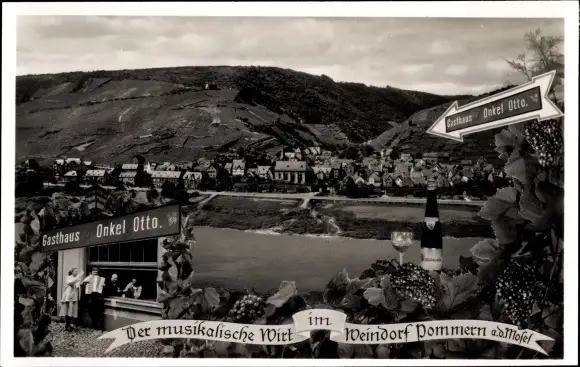 Ak Pommern an der Mosel, Ortspanorama, Gasthaus Onkel Otto, Wein