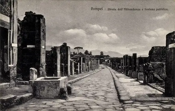 Ak Pompeji Pompei Kampanien, Strada dell' Abbondanza e fontana pubblica