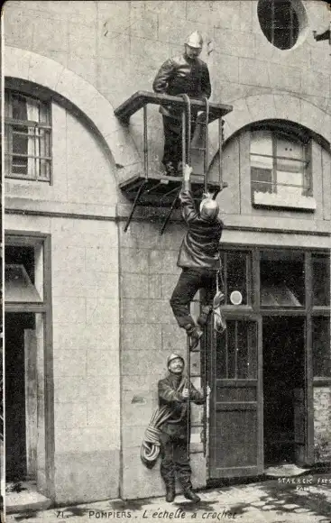 Ak Pompiers, L'Echelle a crochet, Feuerwehr