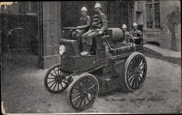 Ak Pompiers, la pompe electrique, Feuerwehr, Löschfahrzeug