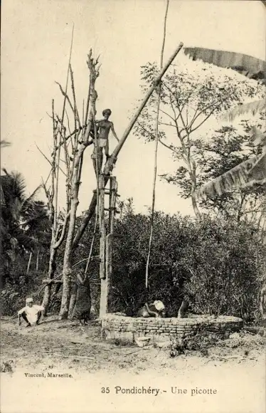 Ak Pondichery Indien, Une picotte, Ziehbrunnen