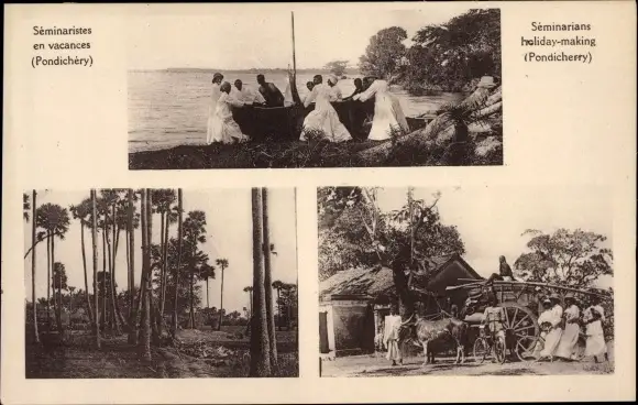 Ak Pondichery Ponducherry Indianer, Seminaristen machen Urlaub