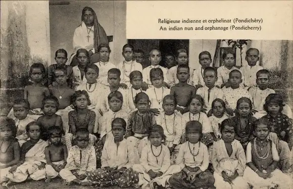 Ak Pondichery Ponducherry Indien, Religieuse Indienne et Orphelinat
