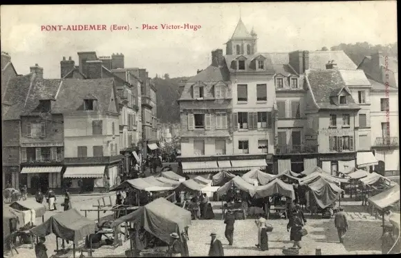 Ak Pont Audemer Eure, Place Victor Hugo, marche