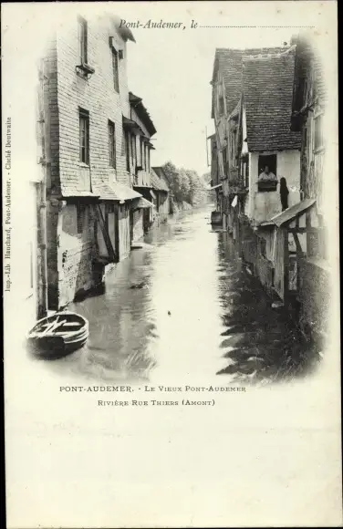 Ak Pont Audemer Eure, Riviere Rue Thiers