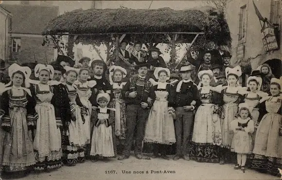 Ak Pont Aven Finistère, Gesamtansicht einer Hochzeit in Pont Aven