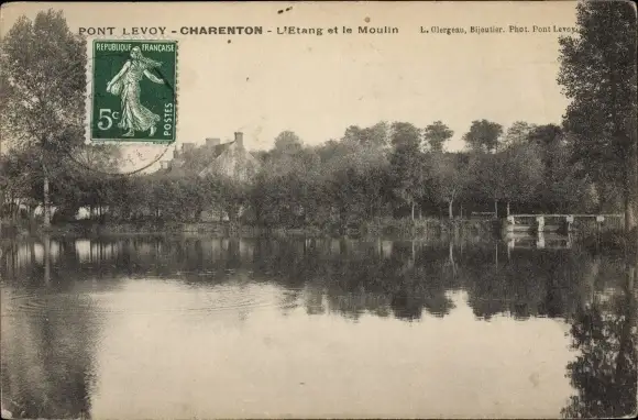 Ak Pont Levoy Charenton Cher, L'Etang, Le Moulin