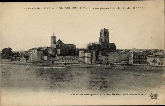 Ak Pont Saint Esprit Gard, Vue generale, Quai du Rhone