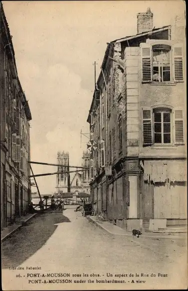 Ak Pont à Mousson Meurthe et Moselle, Straßenpartie, Kriegszerstörungen, I.WK