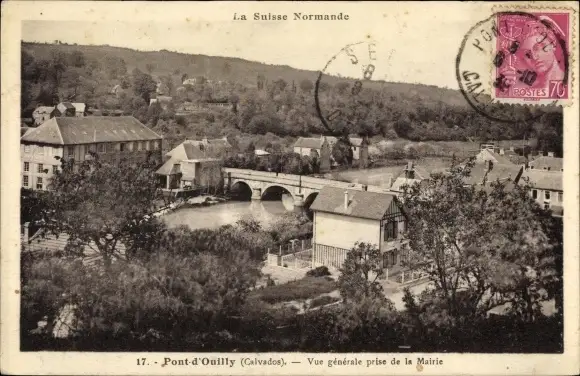 Ak Pont d Ouilly Calvados, Vue generale prise de la Mairie