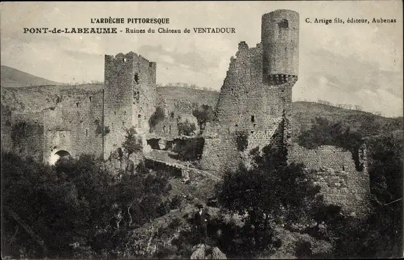 Ak Pont de Labeaume Ardèche, Ruines du Chateau de Ventadour