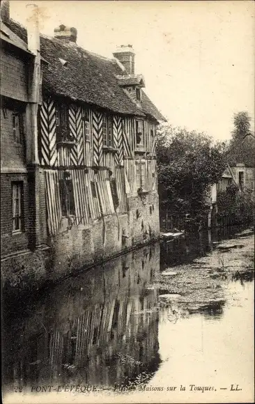 Ak Pont l Eveque Calvados, Maison sur la Touques