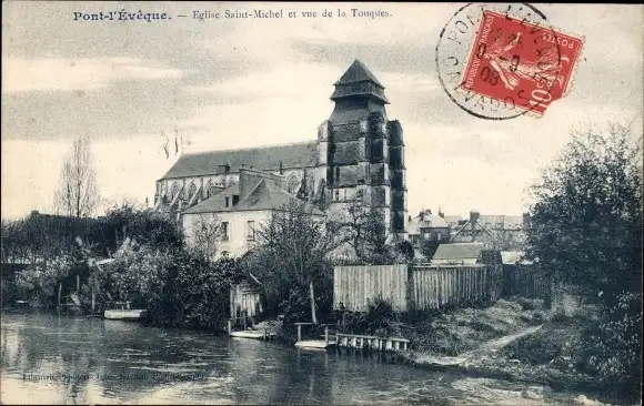 Ak Pont l'Eveque Calvados, Eglise Saint Michel et vue de la Touques