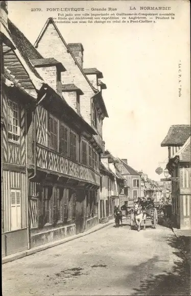 Ak Pont l'Eveque Calvados, Grande Rue, Kutsche