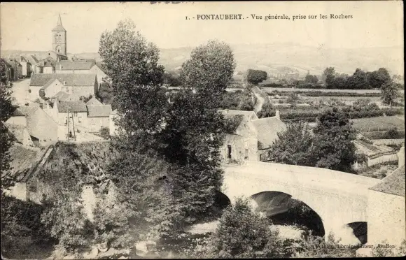 Ak Pontaubert Yonne, Vue generale, prise sur les Rochers