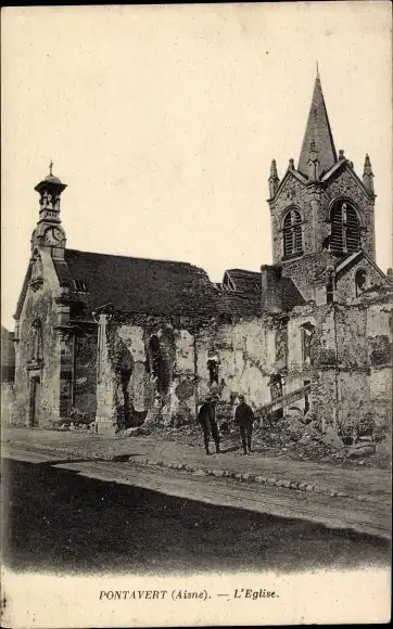 Ak Pontavert Aisne. L'Eglise, Kirche, Zerstörung, Ruine, Krieg