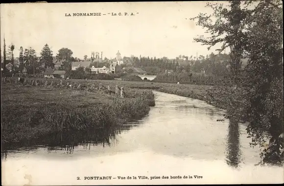 Ak Pontfarcy Calvados, Vue de Ville, Bords de la Vire