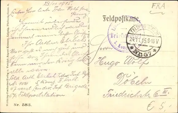 Zustand, siehe Scan, gelaufen, 1915 - ca 14 cm X 9 cm
