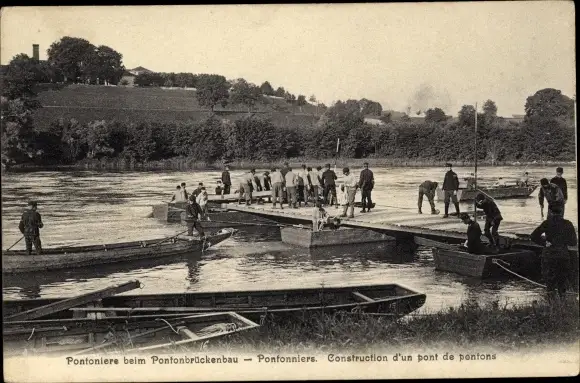Ak Pontoniere beim Pontonbrückenbau, Schweizer Soldaten