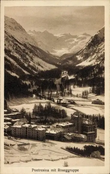 Ak Pontresina Kanton Graubünden Schweiz, Winteransicht, Roseggruppe